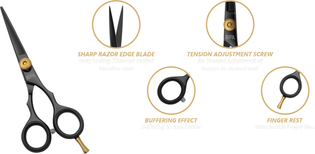 BPX Premium Barber Cutting Scissor Single Packed 6 inch is forged from premium stainless steel titanium coated for long term corrosion resistance.